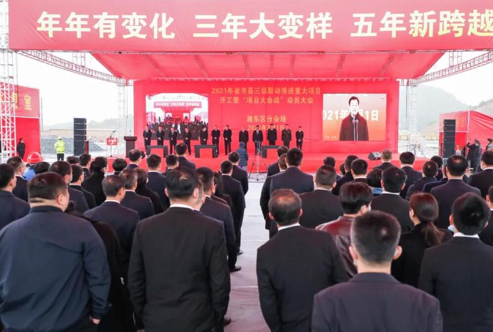 >省委书记刘奇下达开工令,省长易炼红讲话,殷美根主持,赵力平、吴晓军、曾文明、张小平、吴浩、陈俊卿出席。