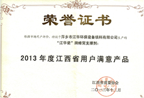 • 2013年用户满意产品证书(蜂窝陶瓷)
