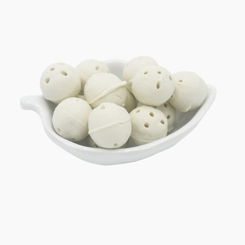 开孔瓷球是在惰性瓷球基础上开发的新产品,它以球体直径轴心进行开孔,既具有如惰性瓷球那样一定的机械强度、化学稳定性和热稳定性,又增加了比表面积和空隙率,从而增加了物料的分散性和通量,降低了系统的阻力。开孔瓷球自投放市场以来,广泛应用于石油、化工和天然气行业替代惰性瓷球作催化剂的覆盖支撑填料。