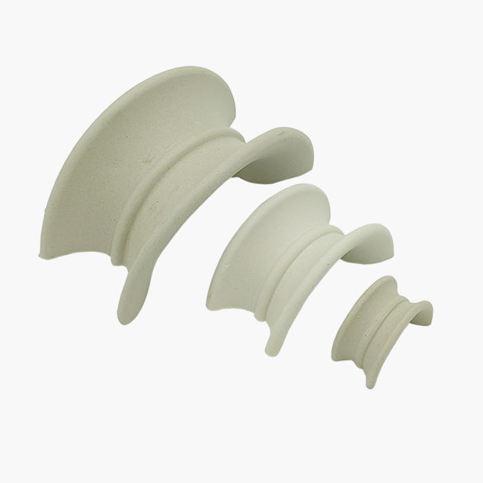 陶瓷矩鞍环的形状介于环形与鞍形之间,因而兼有两者之优点。其填料床层具有较大的空隙率,床层内多为圆弧形液体通道,减少了气体通过床层的阻力,也使液体向下流动时的径向扩散系数减小。