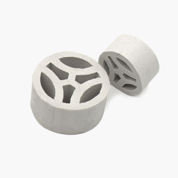 陶瓷扁环是在塑料扁环和金属扁环之后开发出的一种空隙均匀、传质效率高的一种新型陶瓷填料。产品结构合理,比表面积大、接触面积多、通气量高、气液分布均匀、阻力小、压降低、强度高、气液传质性能比一般填料好。