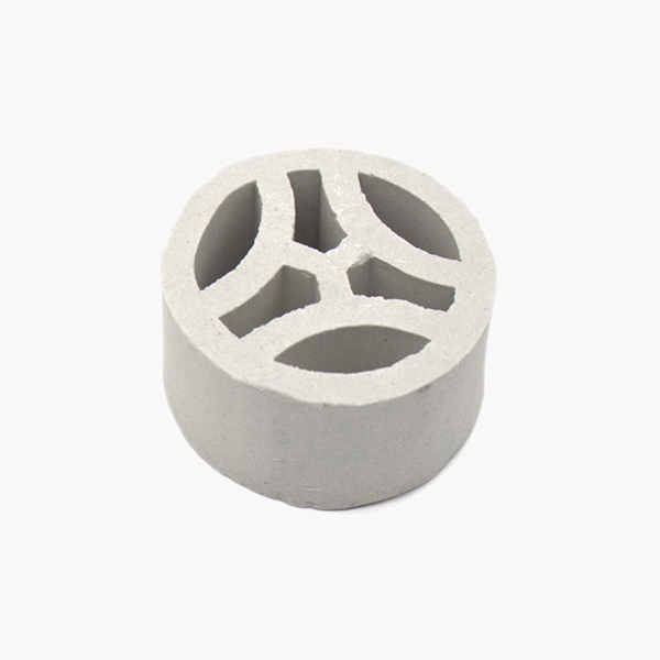 陶瓷扁环是在塑料扁环和金属扁环之后开发出的一种空隙均匀、传质效率高的一种新型陶瓷填料。产品结构合理,比表面积大、接触面积多、通气量高、气液分布均匀、阻力小、压降低、强度高、气液传质性能比一般填料好。