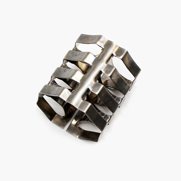 金属八四内弧环填料,也称麦勒环填料,是一种新型高效金属散堆填料,该填料有合理的几何对称性,构造均匀性好及高的空隙率,八弧卷与四弧圈顺轴向交替安排,名弧段沿径向环内折进,从而使填料表面连续而不断开,且在空间均匀分布,与鲍尔环相比,通量可提高15-30%,压降减小20-30%。