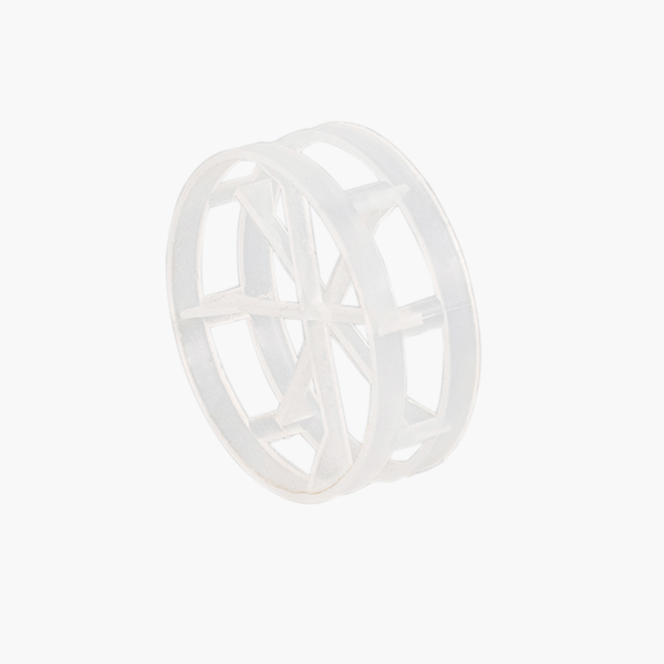 塑料扁环填料是一种在拉西环的基础上,结合鲍尔环的优点改进而成的一种新型塑料填料产品,其高径比为0.2-0.4,取消了阶梯环的翻边,采用三条Y形筋片提高填料强度,在乱堆时能有序排列,流道结构合理,压降低,在处理能力和传质性能上均有所改善。